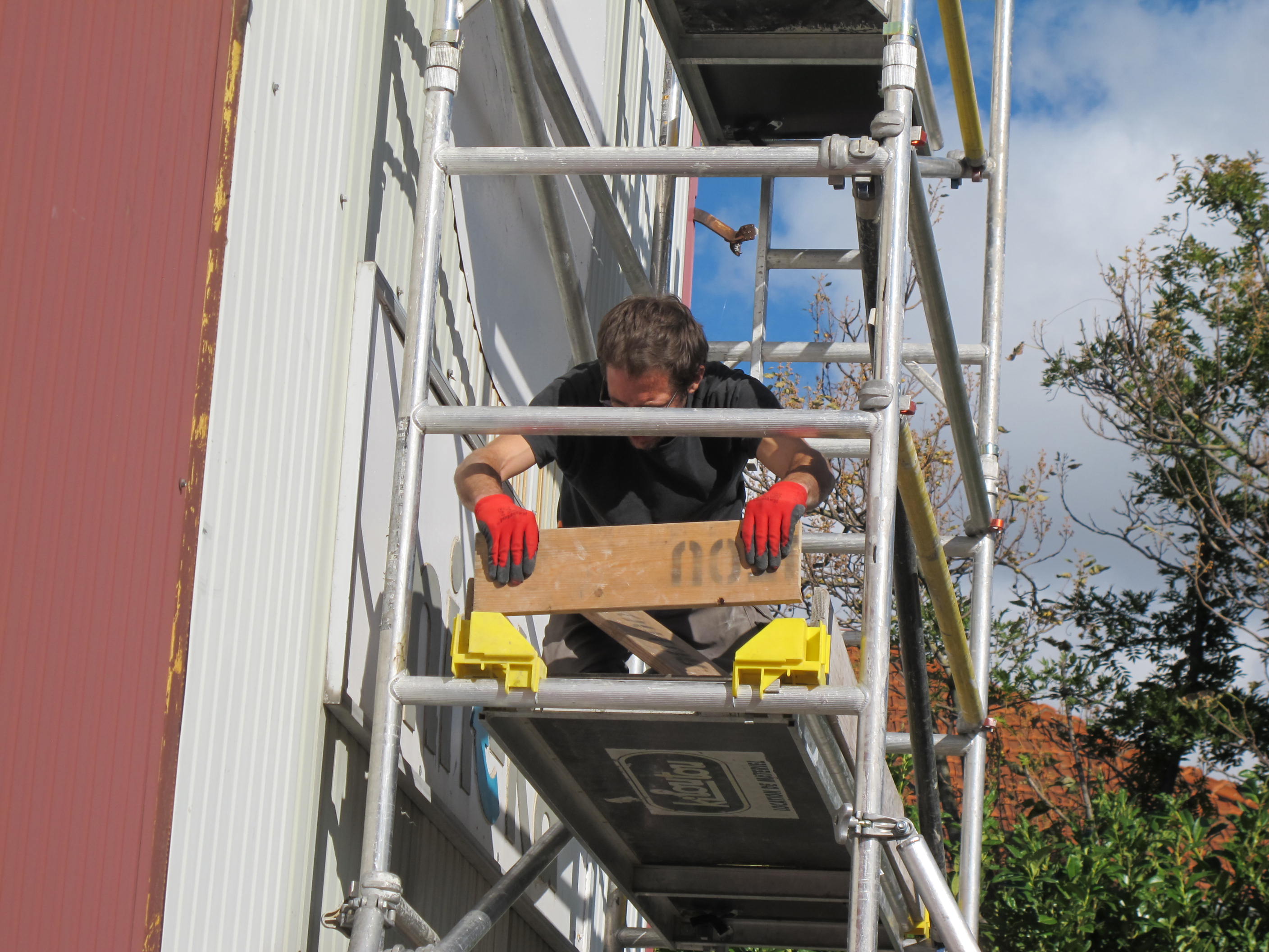Ce chantier participatif a été l’occasion pour l’équipe de monter un grand échafaudage de 8m et de travailler en hauteur : un challenge que l’on rencontre peu.