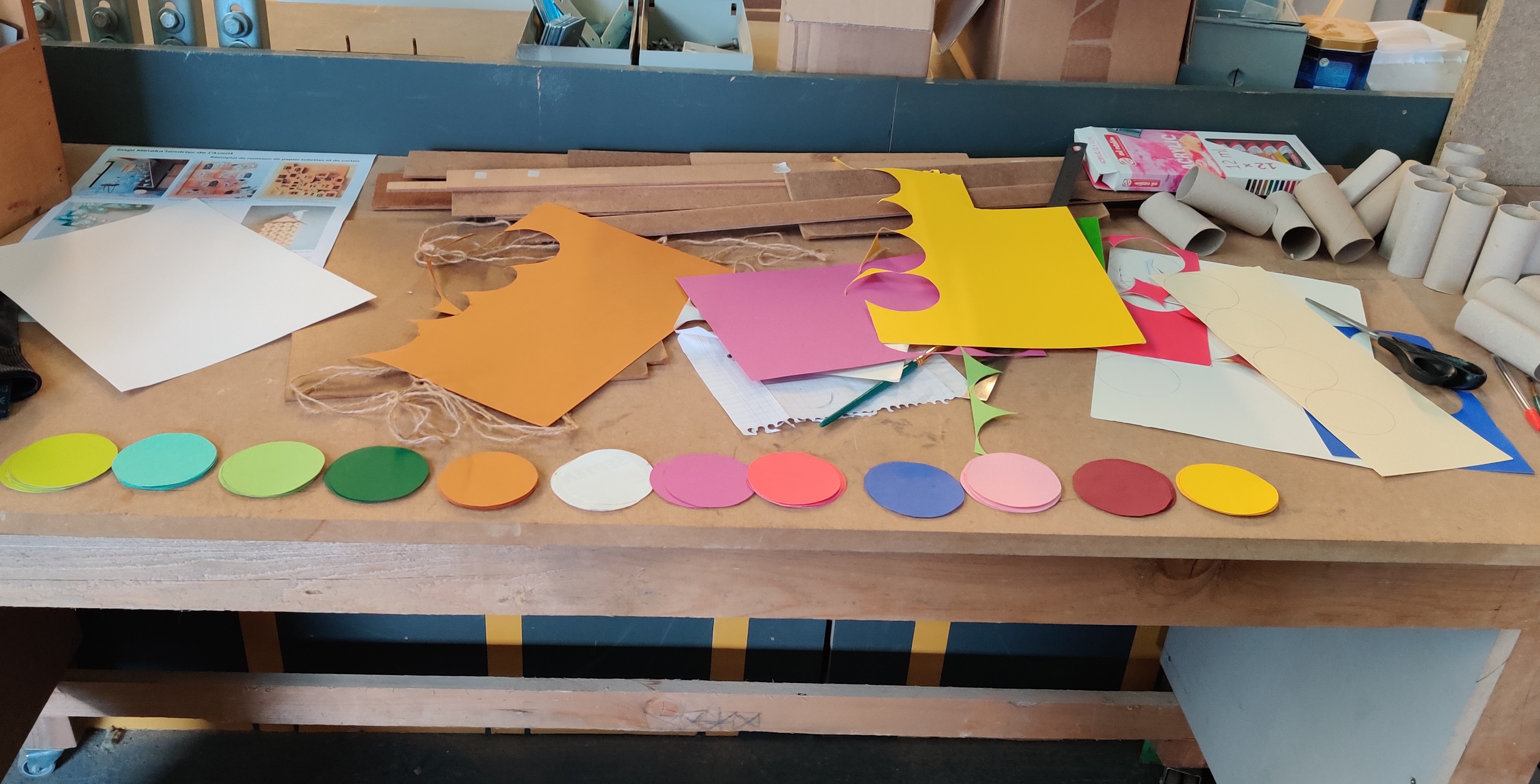 – Miné’kalendirer de l’avent et décorations de Noël : le mois de décembre se prêtait un peu moins aux gros chantiers d’aménagement (il peut faire froid aussi bien dehors que dans le stock !). On en a donc profité pour faire des mini-chantiers, plus créatifs, autour des fêtes de fin d’année. Les bénévoles nous ont donc aidé.e.s à créer un calendrier de l’avent et des petites décorations de Noël.