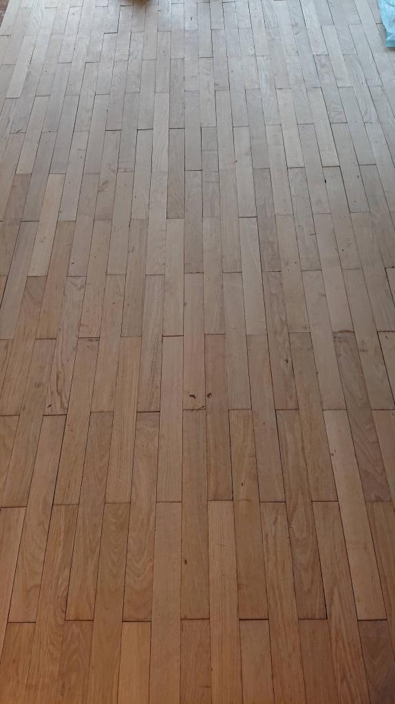 Le retour d’expérience : il a fallu pas mal d‘huile de coude pour poncer les lames une par une et les débarrasser de la poussière accumulée depuis toutes ces années. Leur remise en œuvre a donc pris plus de temps de prévu malgré l’utilisation d’outils professionnels.