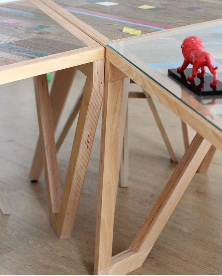 L’Atelier Emmaüs a utilisé une partie du parquet du Lycée pour fabriquer du mobilier imaginé par le designer Thomas Barra pour ONLY LYON.