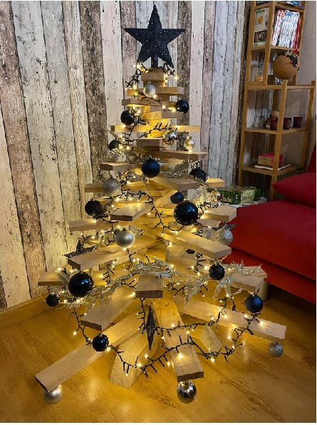 Utiliser des planches de bois, d’OSB, de MDF ou bien d’aggloméré pour former les branches du sapin.