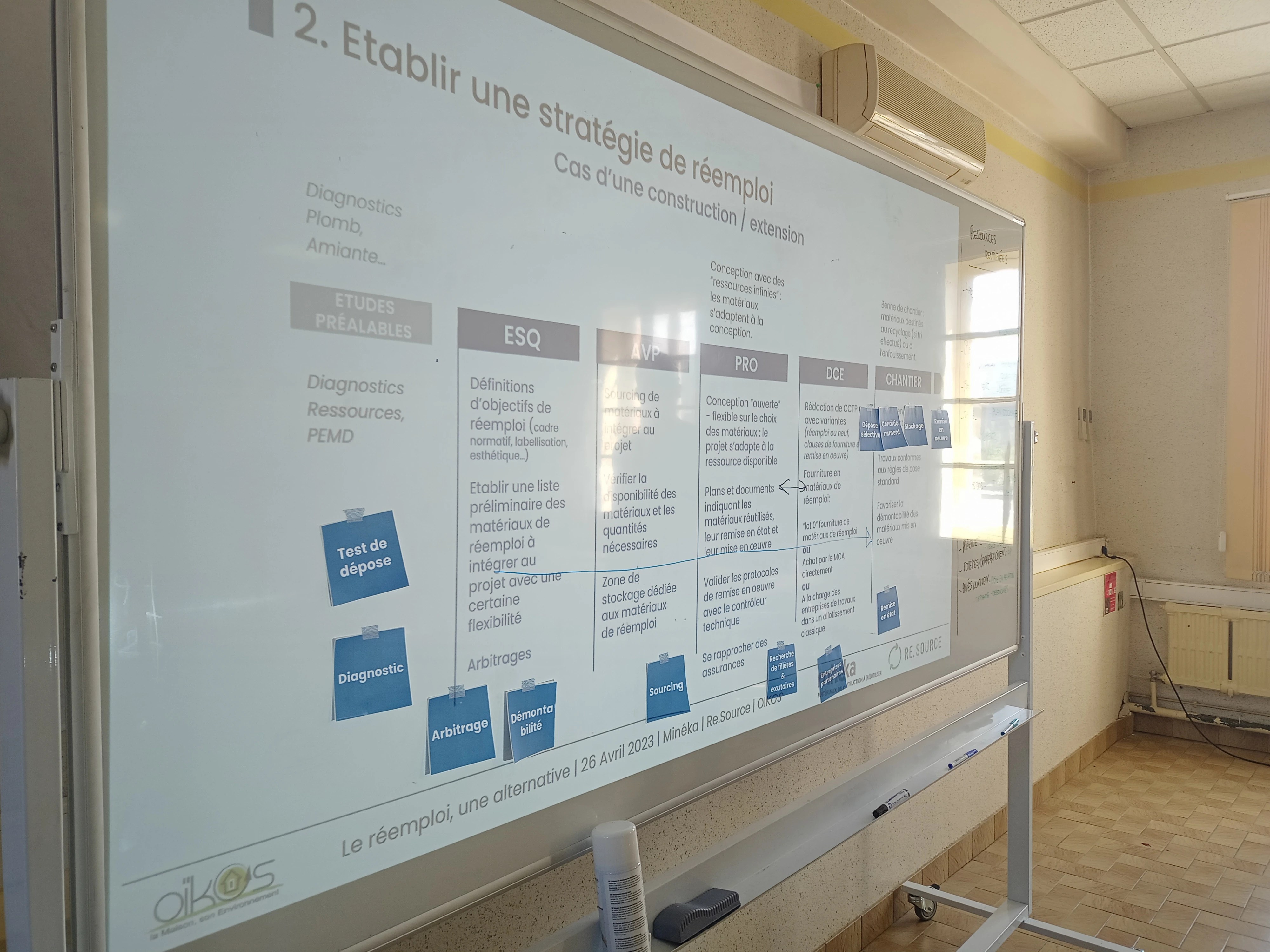Après une visite du Minéstock, nous mettons à votre disposition notre salle de réunion pour un exercice de conception à partir des matériaux du stock.